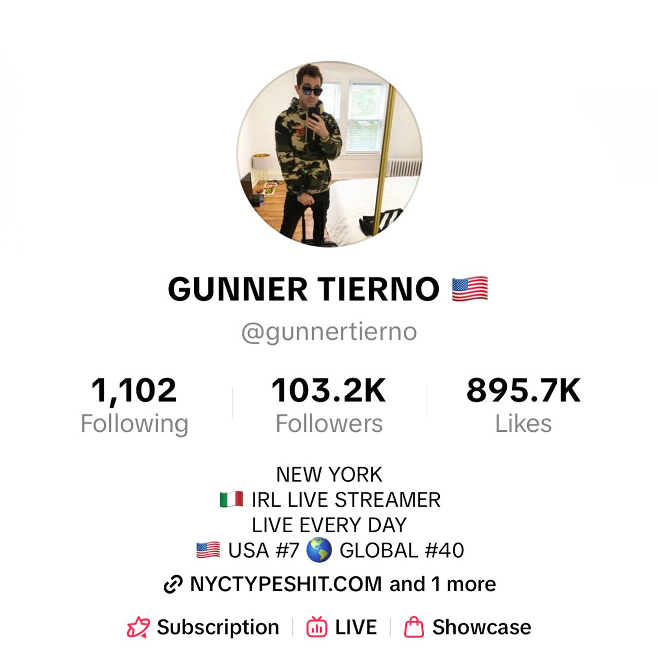 Gunner Tierno is a top TikTok live streamer from New York City, famous for his high-energy streams and real-time interactions. His presence on TikTok has made him a popular figure among viewers who enjoy relatable and high-energy streaming experiences.